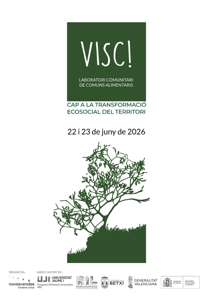 El laboratori VISC! Lab segueix l’estel del Fòrum Castelló en Transició de setembre 2023, i desenvolupa la temàtica treballada als tallers de la III Jornada Internacional Agroecologia i Dona d’octubre de 2025. Es tracta d’utilitzar una nova metodologia que fomente el cultiu del pensament crític, per des de l’Agroecologia i amb els Comuns Alimentaris (Terra, Aigua i Llavors) com a excusa, fomente la resiliència i les sobiranies del territori rural.