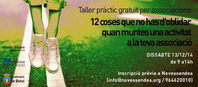 Quan? El dilluns 24 de Noviembre a las 17:30 a la Fundació Novessendes de Betxí (Av. Primer de Maig, 23 baix)