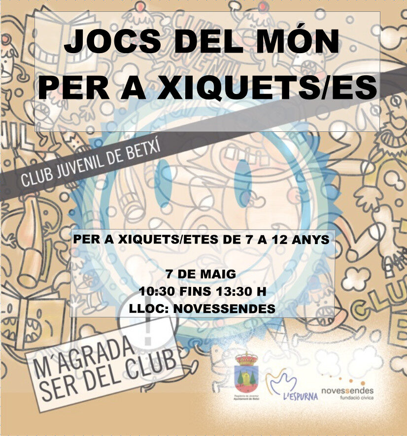 L’aventura comença el dissabte 1 d’octubre. Fins el 14 d’octubre està obert el procés d’inscripció. Eixe mateix divendres 14 d’octubre és realitzarà una reunió informativa a Novessendes a les 19:00. Juga el dissabte és un programa d’activitats d’esplai infantil que fem els dissabtes de matí de 10,30h a 13,30h i que consta de tallers variats i interessantíssimes activitats culturals, creatives i educatives amb els menuts, a més d’eixides, acampades, excursions i viatges per la comunitat per als xiquets de 5 a 12 anys.