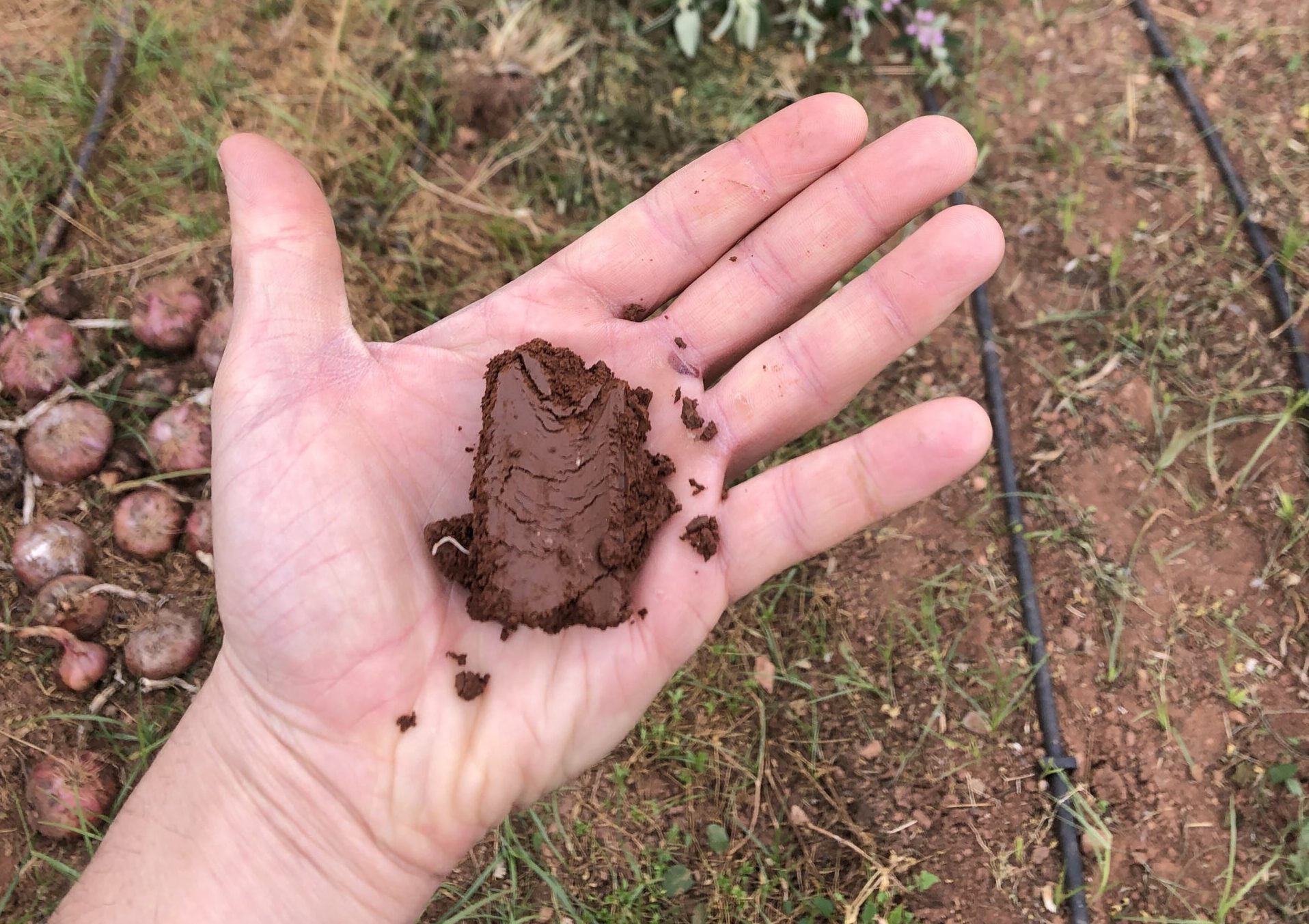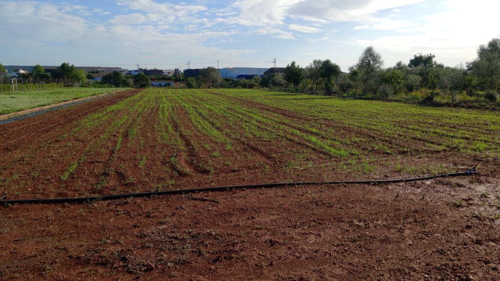 Entre els mesos de juny i octubre de 2025, s’ha posat en marxa aquest nou espai de producció, després de la retirada d’arbres i vegetació desenvolupada al llarg dels darrers anys d’abandonament i el llaurat de la terra. Després de realitzar sondatges i analítiques per avaluar la qualitat i característiques del sòl, s’ha decidit implementar-lo amb una plantació d’adob verd (Cevada-Secale cereale, Veça villosa-Vicia villosa, Civada-Civada Sativa, Pèsol verd-Pisum sativa, Fabó-Vicia fava, Erb-Vicia erbilia i Mostaça Blanca-Sinapis Alba) que permetrà amb la seua incorporació del seu triturat en sec en primavera, fertilitzar i generar un bon marc de cultiu per a la plantació de varietats tradicionals durant les temporades vinents.