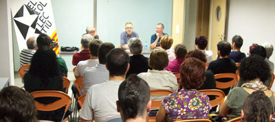 Pere Ortega, emparentat de manera pròxima amb la Vall d’Uxò, ens comentà l’estructura del seu llibre en una xarrada de poc més d’una hora que anà més enllà de la presentació del llibre com a tal, i despertà les consciències crítiques dels assistents amb multitud de preguntes.